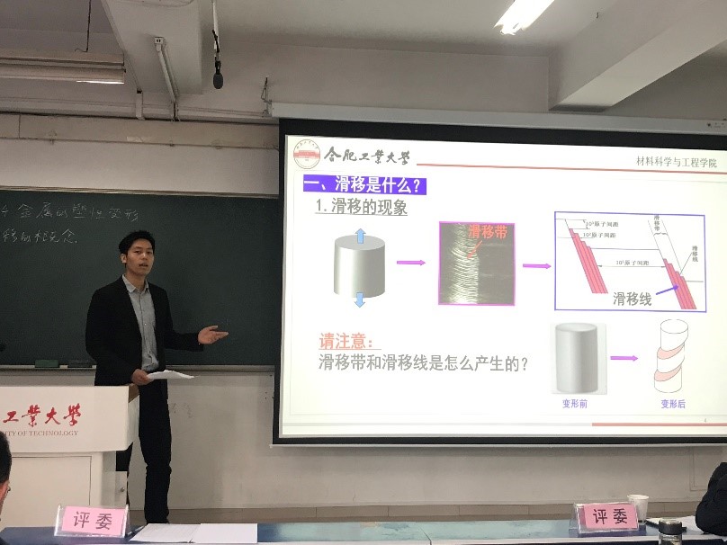 比赛前,学院党委书记吕珺讲话,强调了大学专业课教师“立德树人”的根本任务。专业课老师对大学生的成长有非常重要的影响,作为专业课老师,讲好一门课,不仅要讲好材料类专业知识,同时也要结合材料类专业特点,通过课程思政的有效设计,将思政元素与专业知识合理融入,实现思想引领,帮助学生树立正确的价值观,“为党育人,为国育才”。