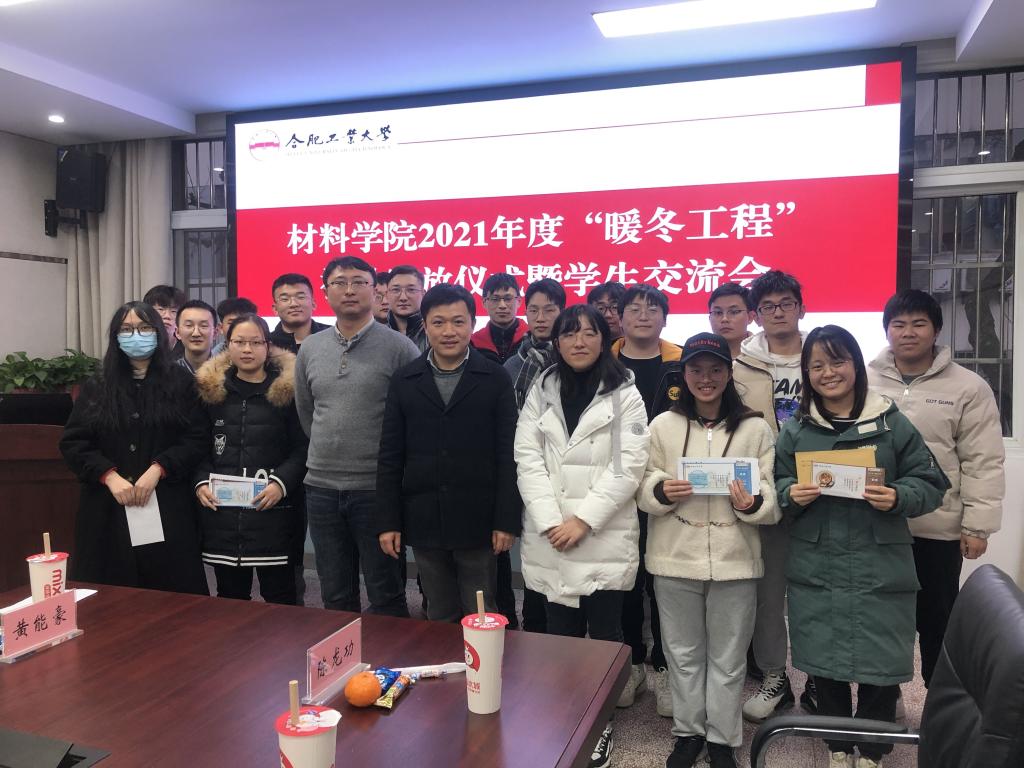 会上,学院2018级辅导员刘琬菁老师向参会人员详细介绍本次学校“暖冬工程”设计原则、落实办法、资助范围及实施成效。学院党委副书记、纪委书记朱峰老师为每一位学生代表发放写有学院温暖寄语的“暖冬工程”补助券。金属材料工程19-2班刘邦琪同学说道:“这次暖冬补助就像是冬日中的一把火,温暖了整个心房;个人亦将立志要用切实的行动努力学习,以优异的成绩和扎实的功底回馈关爱,用真情回报工大,用行动报效祖国。”