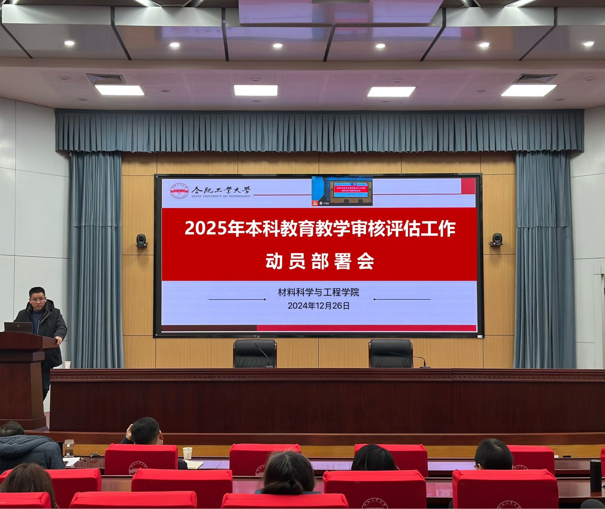 于校学术会议中心一楼大报告厅召开了2025年本科教育教学审核评估工作动员部署会。学院领导班子成员及全体教职工参加会议。