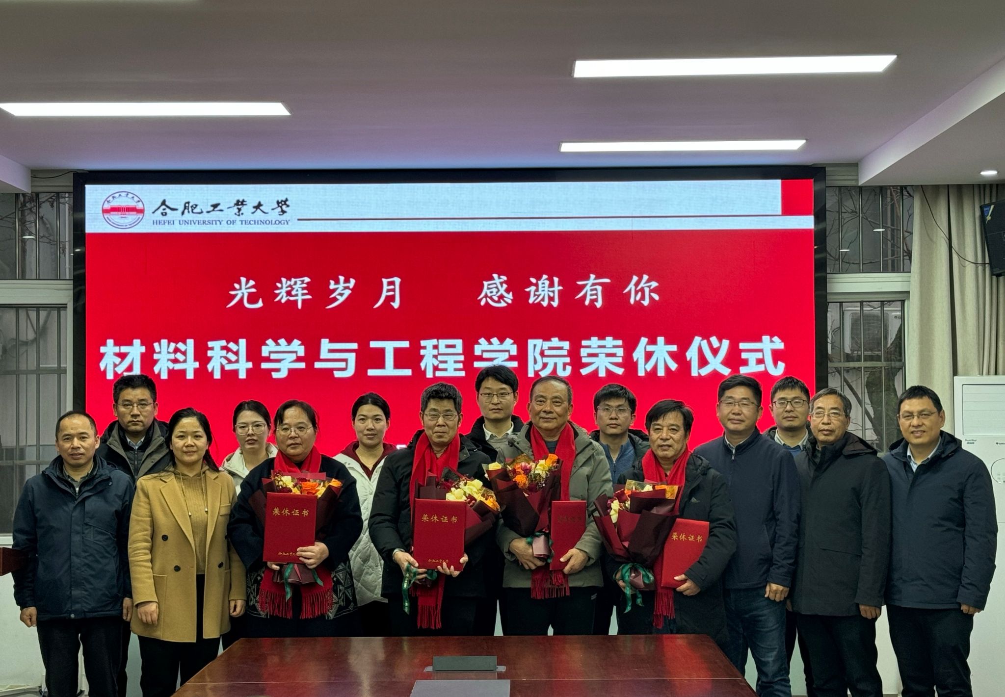 会上,学院领导为退休教师颁发荣休证书,青年教师代表敬献鲜花,对他们数十载如一日扎根讲台、深耕科研的坚守与付出表达崇高敬意。全体参会人员合影留念。