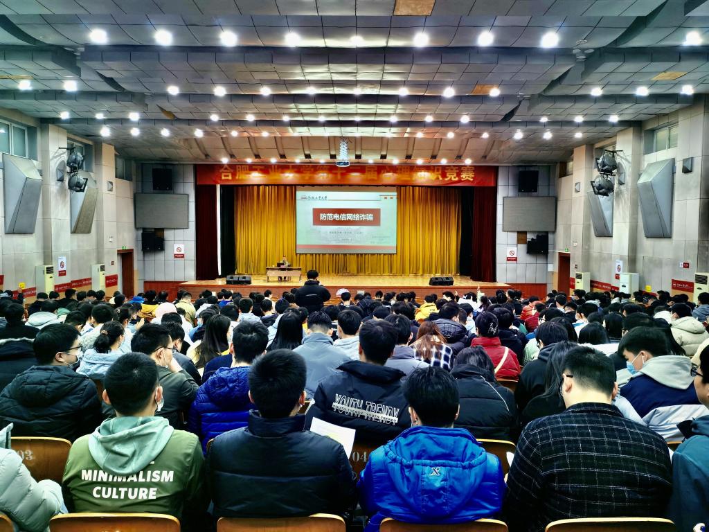 12月13日在斛兵礼堂举办研究生防电信网络诈骗主题教育大会,学院全体研究生到场参加。