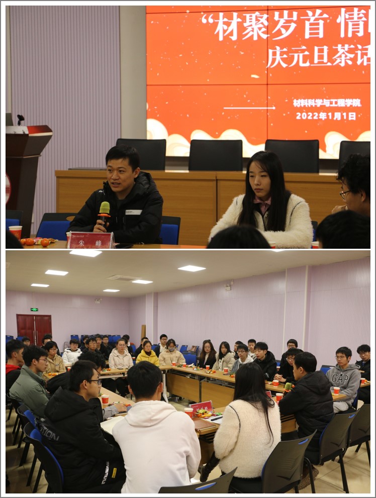 在综合楼一楼多功能厅举办“材聚岁首 情暖工大”庆元旦师生交流会,学院相关负责人、年级辅导员及学生代表参加活动。