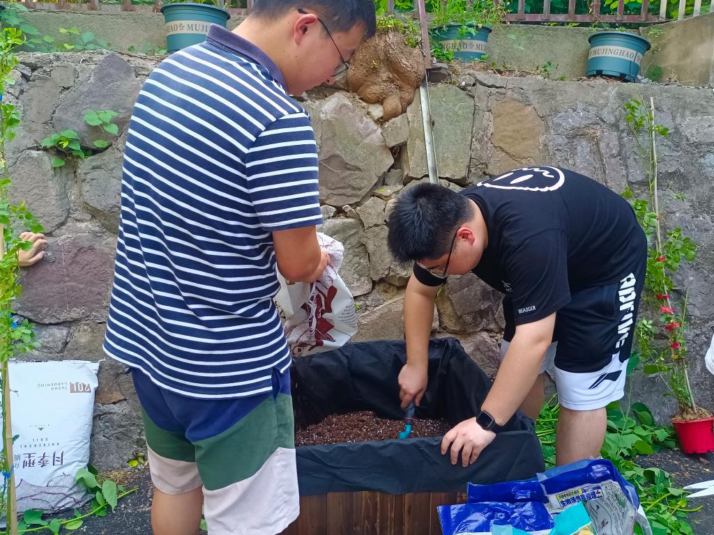 在屯溪路校区学院综合服务中心西侧组织开展“我为母校留下一片彩”花卉种植活动,共同亲手种下了3棵藤本月季。