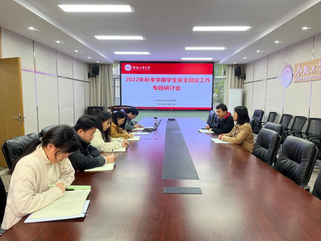 在材料楼综合服务中心210召开2022年秋季学期学生安全稳定工作专题研讨会。学院党委相关负责人、全体学生政工干部参加本次会议。