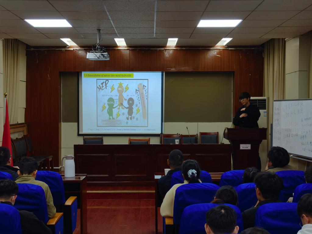 601报告厅作了题为“等离子体法构筑非贵金属/金属氢氧化物异质结构电催化剂及其增强的HER性能研究”的学术报告。