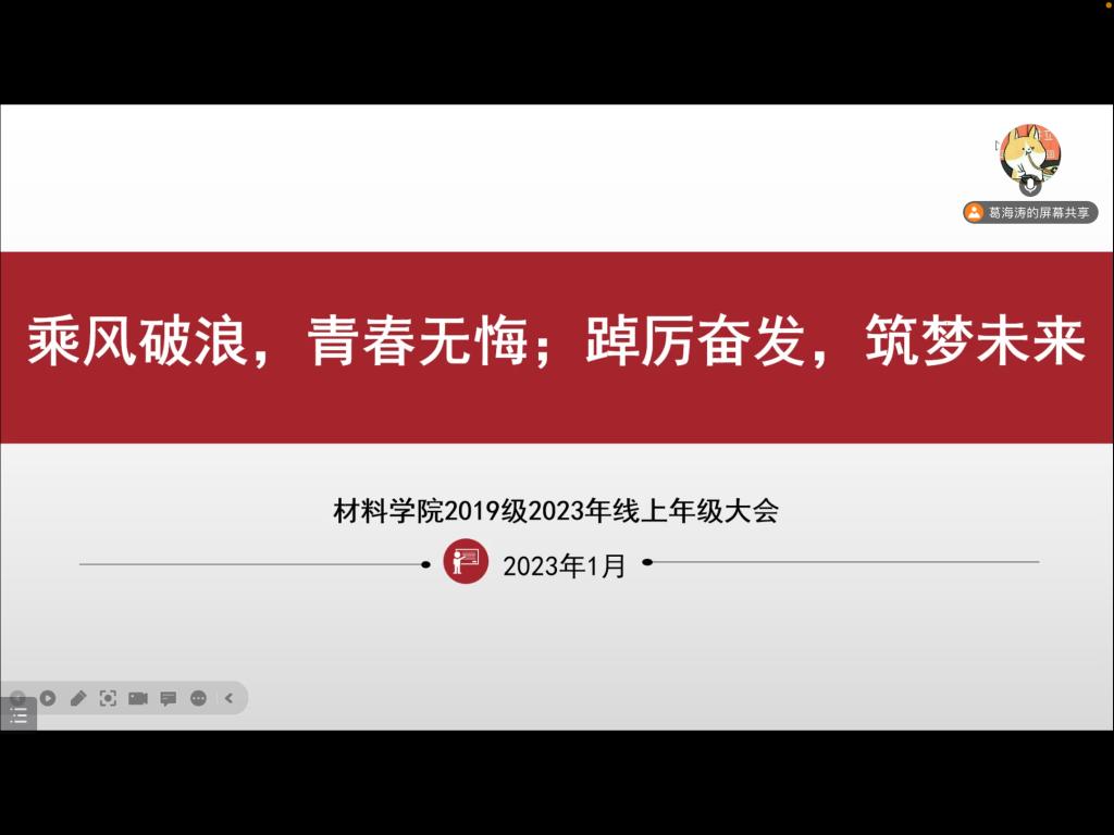 组织2019级学生召开以“乘风破浪 青春无悔;踔厉奋发 筑梦未来”为主题的线上年级大会,学生辅导员及全体2019级学生参加会议。