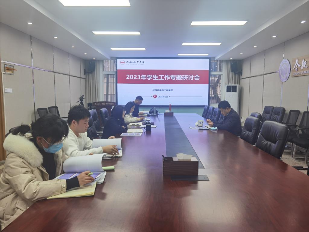 在材料楼综合服务中心210会议室召开2023年度学生工作专题研讨会。学院党委相关负责人、全体本科生、研究生辅导员参与。