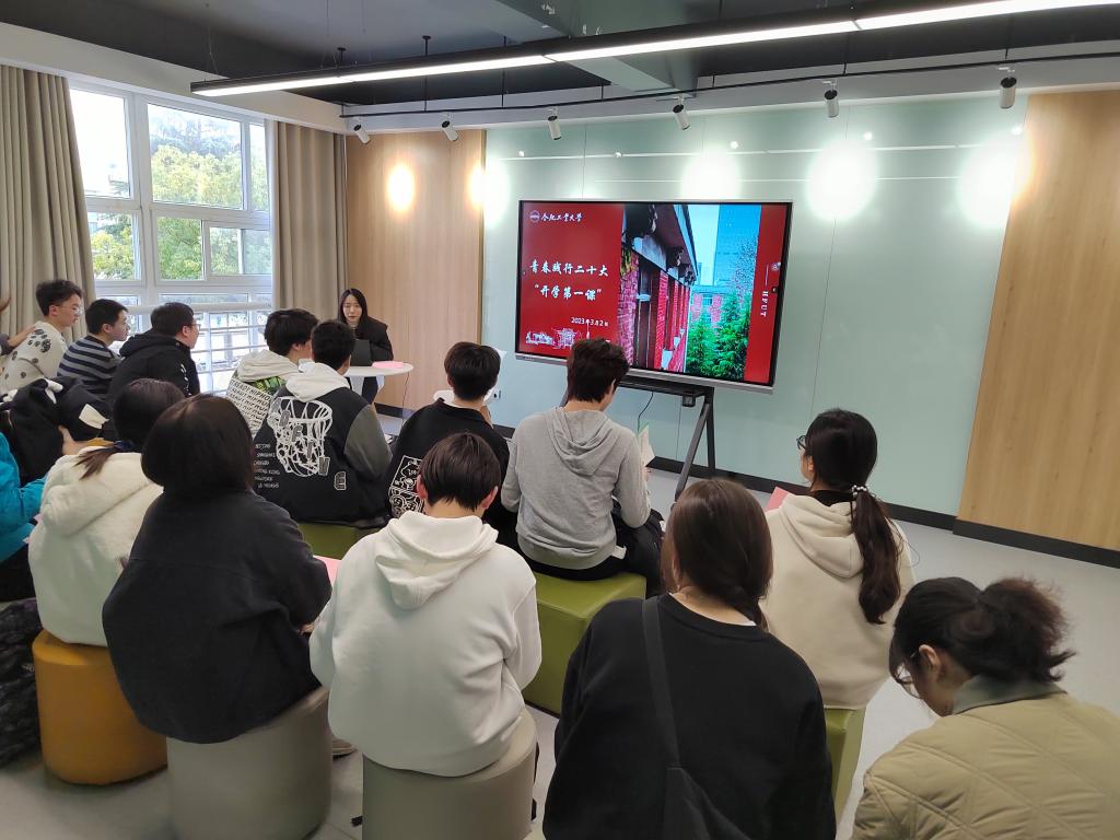 在翡翠湖校区学生社区2号楼开展新学期“青春践行二十大‘开学第一课’”活动。
