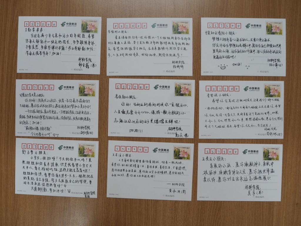 主题的明信片,并认真书写了对孩子们想说的话,为孩子们送去美好的祝福。有的同学们讲述了最近学习生活中的趣事,有的同学描绘了工大校园的美丽景色,有的同学分享了大学生活的美好……在明信片的最后,大家不约而同地写下了对丹寨孩子们的鼓励与祝福,希望他们能够健康快乐地成长。此外,学院还为山区小朋友们准备了学习工具大礼包,在精神上给予鼓励的同时,也为小朋友们送上最需要的物资,帮助他们更好的求学与成长!