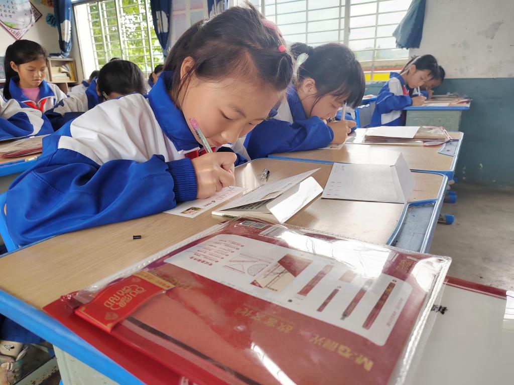的方向努力。”五年级(2)班的王泽微这样说。孩子们收到信件后,主动为大山外的哥哥姐姐们写了回信。信中,长青二小的孩子们大方地介绍了自己以及自己的学校,美丽的丹寨风景,以及学习上困惑的瞬间,回信中或许会有些许错别字,或许语句不是很通顺,但书信中每一个字,每一句话,甚至每一个标点符号,都满载着孩子们的深厚情谊,他们正在用最传统质朴的方式,用最真挚温暖的文字,传递最美好的祝福和问候。