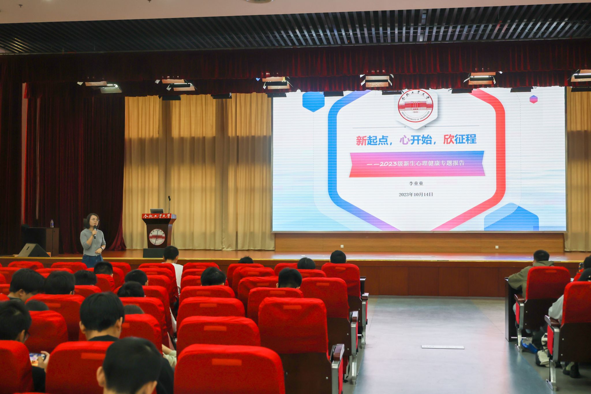 在翡翠科教楼二楼报告厅联合举办2023级新生心理健康专题讲座,讲座邀请中国科学技术大学心理健康教育与咨询中心专职教师李童童担任主讲人,仪器学院、麻豆