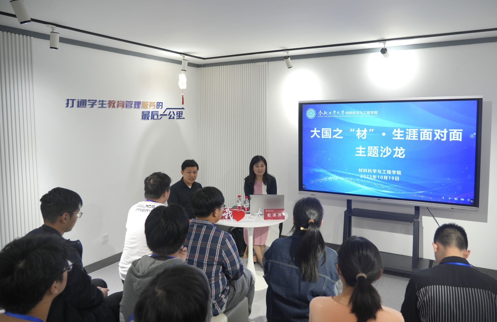 在屯溪路校区七号楼学生社区“沙龙空间”举办“大国之材——生涯面对面”主题沙龙活动。海信集团工会副主席、行政后勤中心副总经理、学院2000届校友赵冰冰担任分享嘉宾。学院党委副书记兼纪委书记朱峰主持,2024届毕业班辅导员和30余名学生代表参加活动。