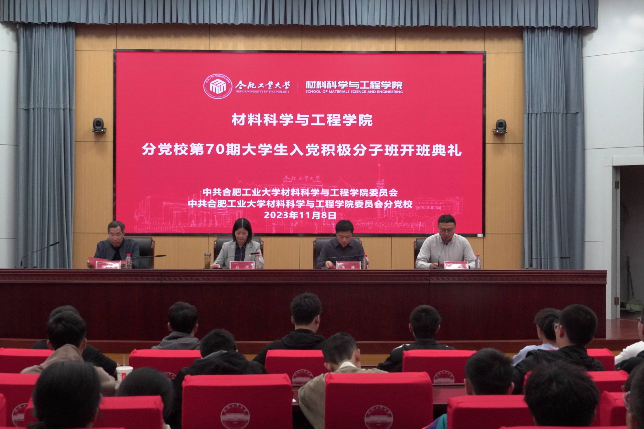 分党校第70期大学生入党积极分子培训班开班仪式暨党课第一讲在屯溪路校区学术会议中心一楼报告厅顺利举行。学院党委、分党校相关负责人、班主任及123名学员在会场参加了仪式。