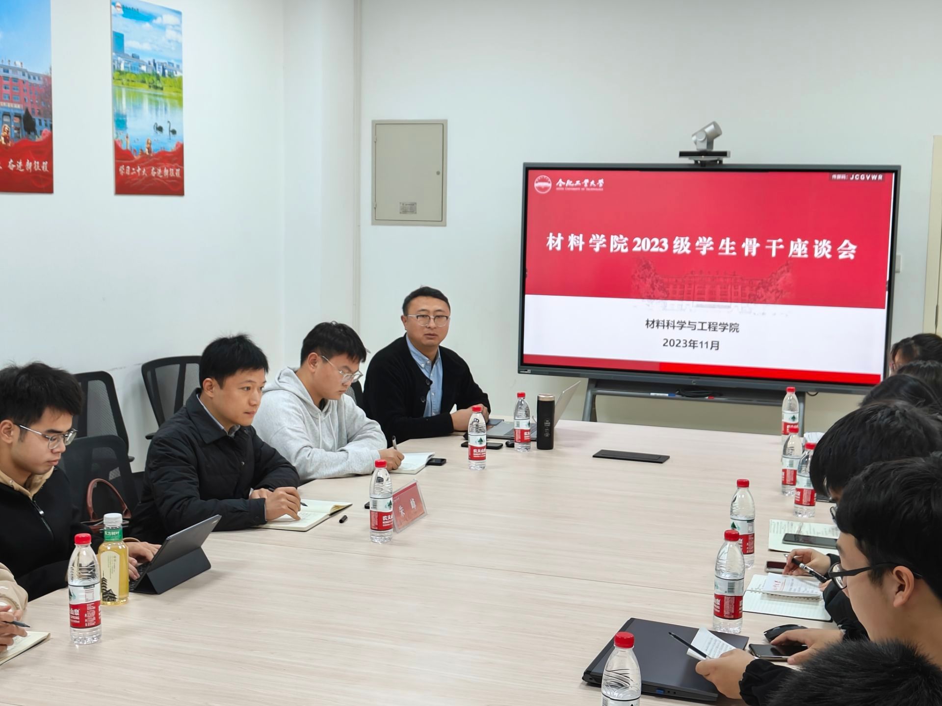 于翡翠湖校区综合楼317室召开2023级学生骨干座谈会,学院党委副书记兼纪委书记朱峰、学生辅导员、2023级学生骨干参与此次座谈会。