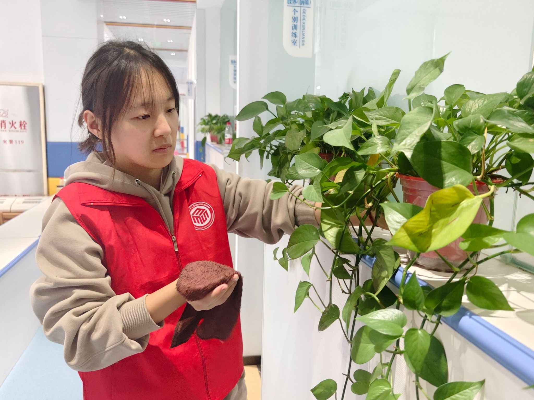 活动前期,志愿者们在党支部内部为孩子们征集了祝福语,准备了帽子、围巾等暖冬物资。活动现场,志愿者们带领孩子们开展了“一日陪伴”活动,通过康复训练、互动游戏、温情陪伴等举措,给孩子们带去了快乐和温暖。志愿者们亲手把一件件暖冬物资和小零食送到孩子们手中,把大哥哥、大姐姐们的祝福寄语传递给孩子们。活动中,志愿者们与康复中心工作人员和孩子家长深入交谈,详细关心询问每一位孩子的生活情况和康复进展,并一起进行了卫生打扫、垃圾清理、浇水拖地等,为孩子们营造温馨和干净整洁的环境。