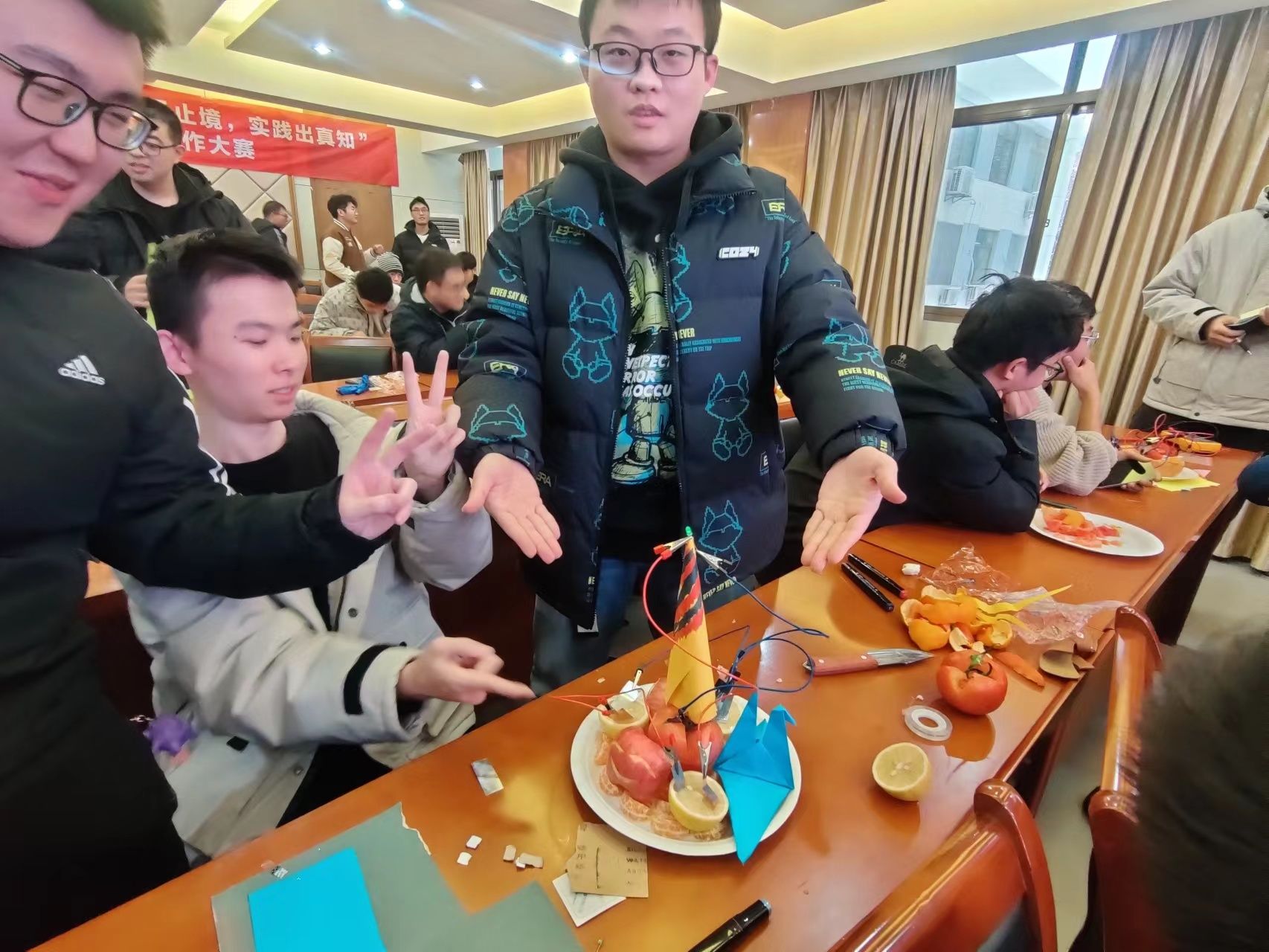 和化工学院的20余支队伍参加。现场气氛欢快热闹,每支队伍都在构思自己的设计理念和原理,互相阐述着属于自己的理解,从橘子、柠檬、西红柿到梨子,从铜片、铝片、导线到彩纸,水果电池的结构逐渐清晰。在最终展示环节,参赛队伍纷纷阐述了各自电池的设计理念和独特寓意。评委团对每支队伍进行了电池知识的问答,参赛团队在问答中互相学习,共同掌握电池相关知识点,真正实现了实践创新与理论学习的有效结合。