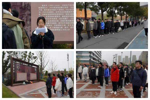 当天下午,师生从翡翠湖校区徒步前往延乔路,抵达延乔纪念碑后,向两位革命烈士敬献鲜花并默哀。随后,学员班代表戴月带领全员学习了陈延年、陈乔年两位革命烈士的英雄事迹和革命精神。学员们逐一分享了学习心得。马文杰同学总结出了“追寻真理”“投身实践”“自立自强”的延乔精神。刘正杨同学说:“先辈们勇于担当、无私奉献的时代精神,正是我们新时代青年需要学习的。”苏凌同学有感而发:“我们深知他们的人生远远不只是一部作品的厚度,而如今美好的现实生活才是那些伟大梦想的续集。”