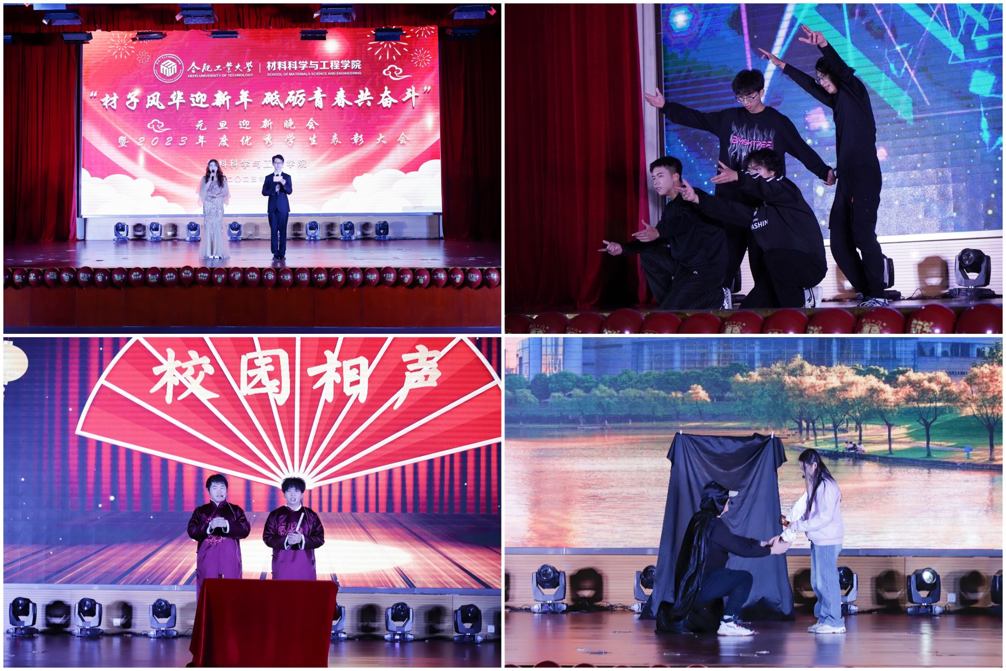 在翡翠湖校区科教楼报告厅举行“材子风华迎新年,砥砺青春共奋斗”元旦迎新晚会暨2023年度优秀学生表彰大会。麻豆