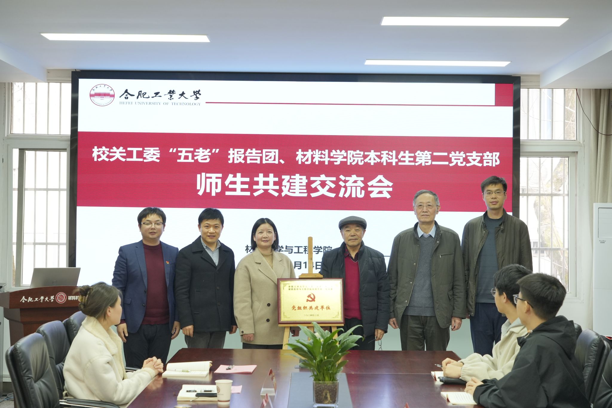 本科生第二党支部与学校关心下一代工作委员会“五老”报告团在材料楼综合服务中心210开展结对共建活动。党委离退休工作部(处)部长李晓玲、校关工委常务副主任王皖江、校关工委“五老”报告团团长钟玉海、麻豆
