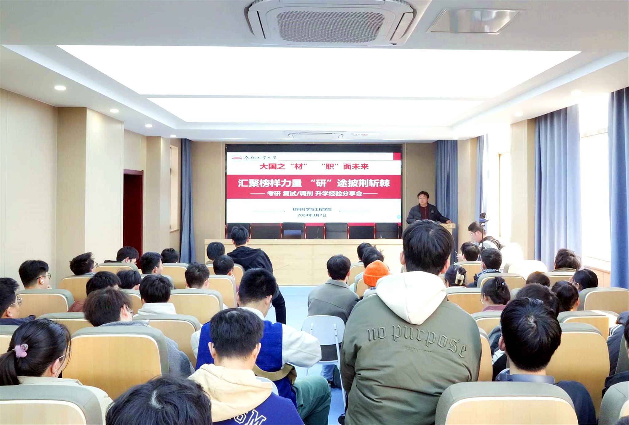 在材料楼601报告厅举办了“汇聚榜样力量,‘研’途披荆斩棘”考研复试经验分享会。学院2024届毕业班辅导员、2019级成功上岸学生代表、2020级拟参加考研复试的同学参加了此次活动。
