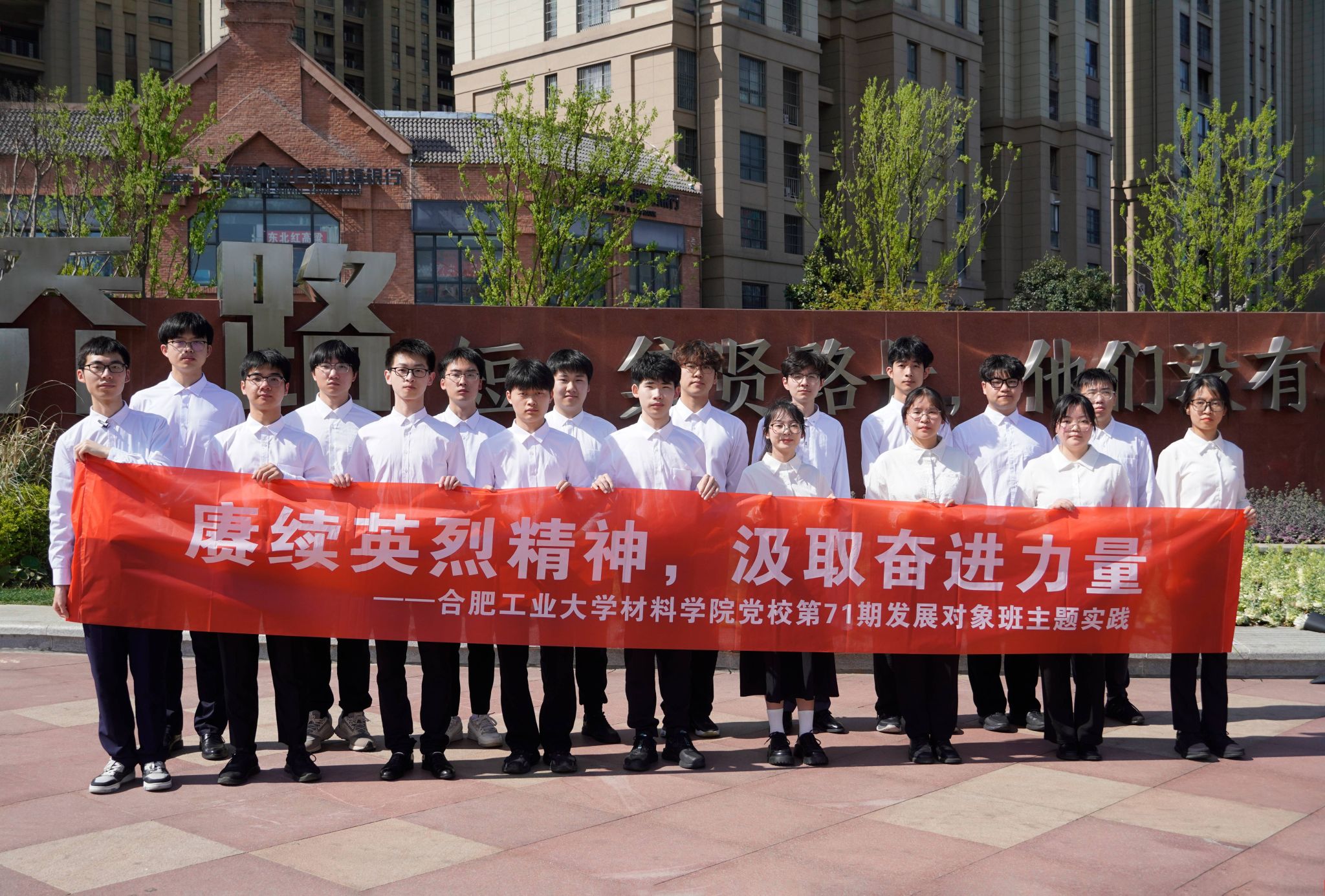 3月30日上午,麻豆 组织分党校第71期发展对象班成员于合肥市延乔路纪念广场开展“赓续英烈精神,汲取奋进力量”主题实践活动。