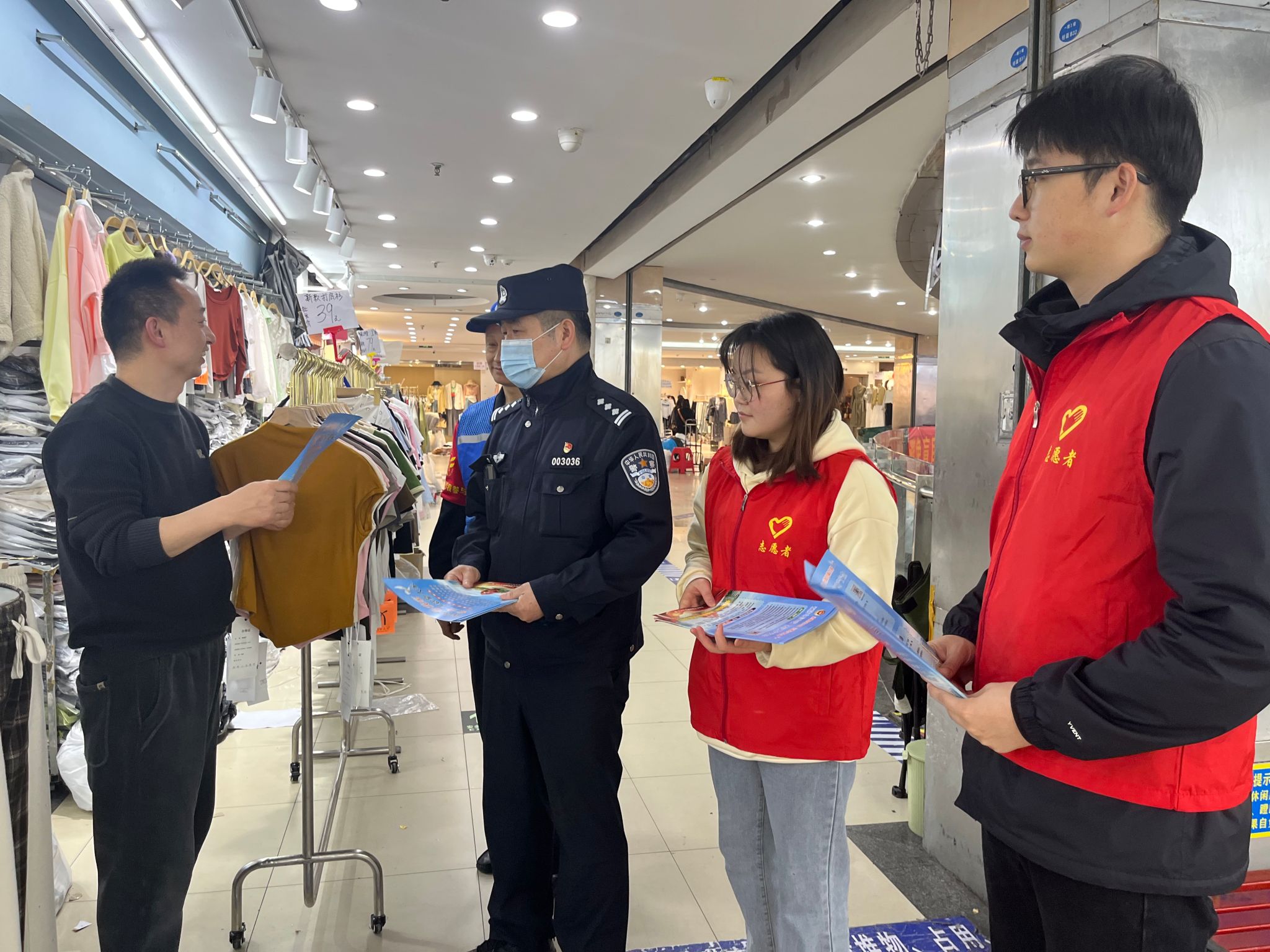 本科生第二党支部赴合肥市长淮街道白马服装城开展反诈宣传活动。长淮街道、团工委和长淮派出所相关负责人、本科生第二党支部学生代表参与本次活动。