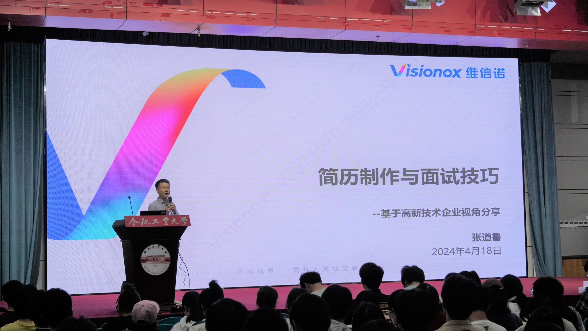 4月18日晚上,麻豆 在屯溪路校区东风报告厅举办“强国之‘材’,‘职’引未来”就业指导月系列活动之“面试礼仪与技巧”专题讲座。本次讲座邀请了京东方大学堂认证人才测评师,新安人才网认证金牌面试官张道鲁主讲,学院2025届本科毕业生和研究生400余人参加本次讲座。