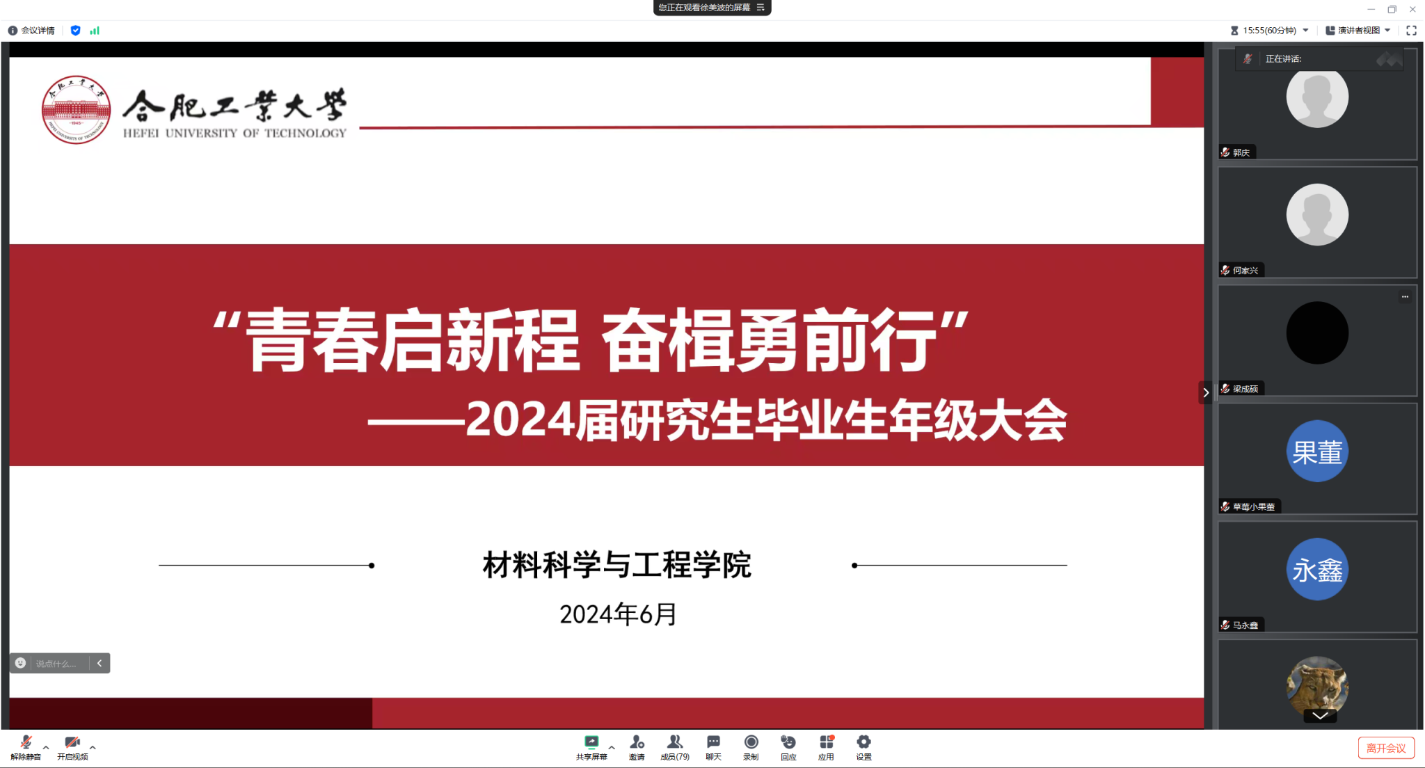 学院召开“青春启新程,奋楫勇前行”主题毕业生年级大会,研究生辅导员和全体2024届毕业生线上参加。