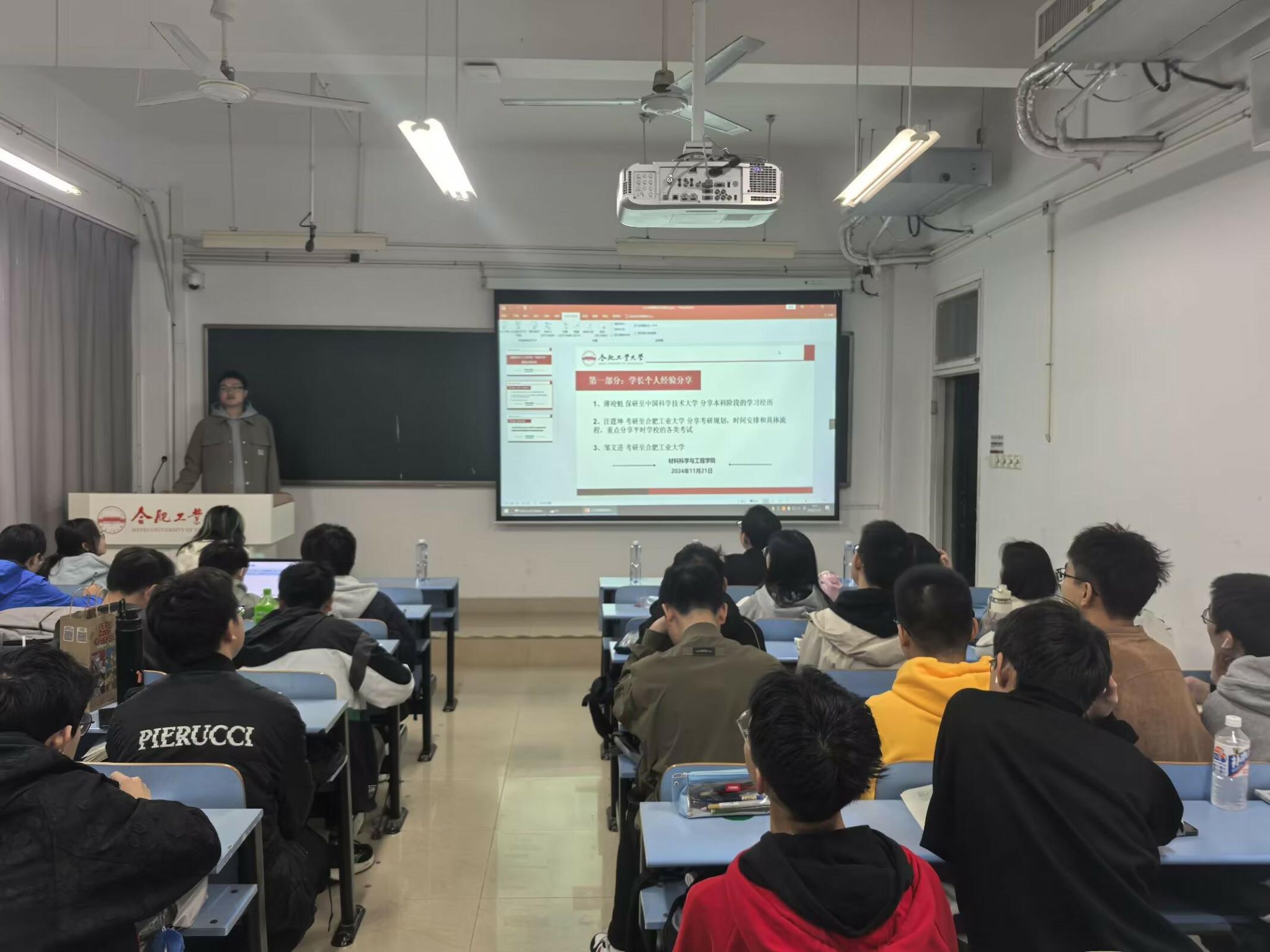 11月21日晚,麻豆 在翡翠湖校区八教206举办了“材优干济”朋辈交流沙龙。学院材料物理24-1班班主任、优秀学生代表和2024级材料物理专业全体同学参加本次活动。