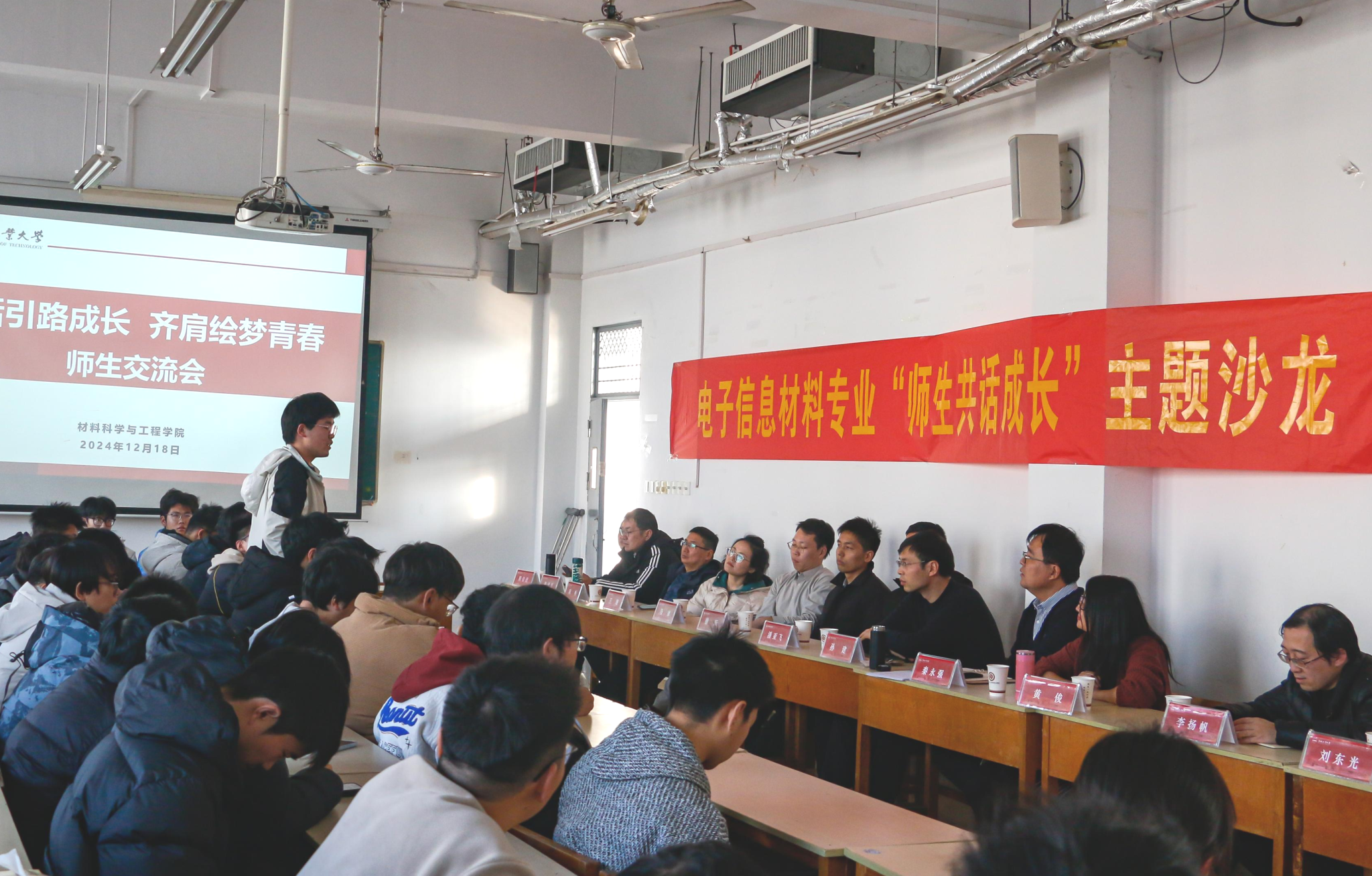 本次交流会由金属材料工程系副主任秦永强主持。他介绍了电子信息材料专业基本情况、师资力量、学科竞赛、教学科研、平台建设等情况,他勉励同学们学好理论知识,掌握实践技能,努力成长为新一代信息技术、新能源、新材料等战略性新兴产业发展需求的高级专门人才。