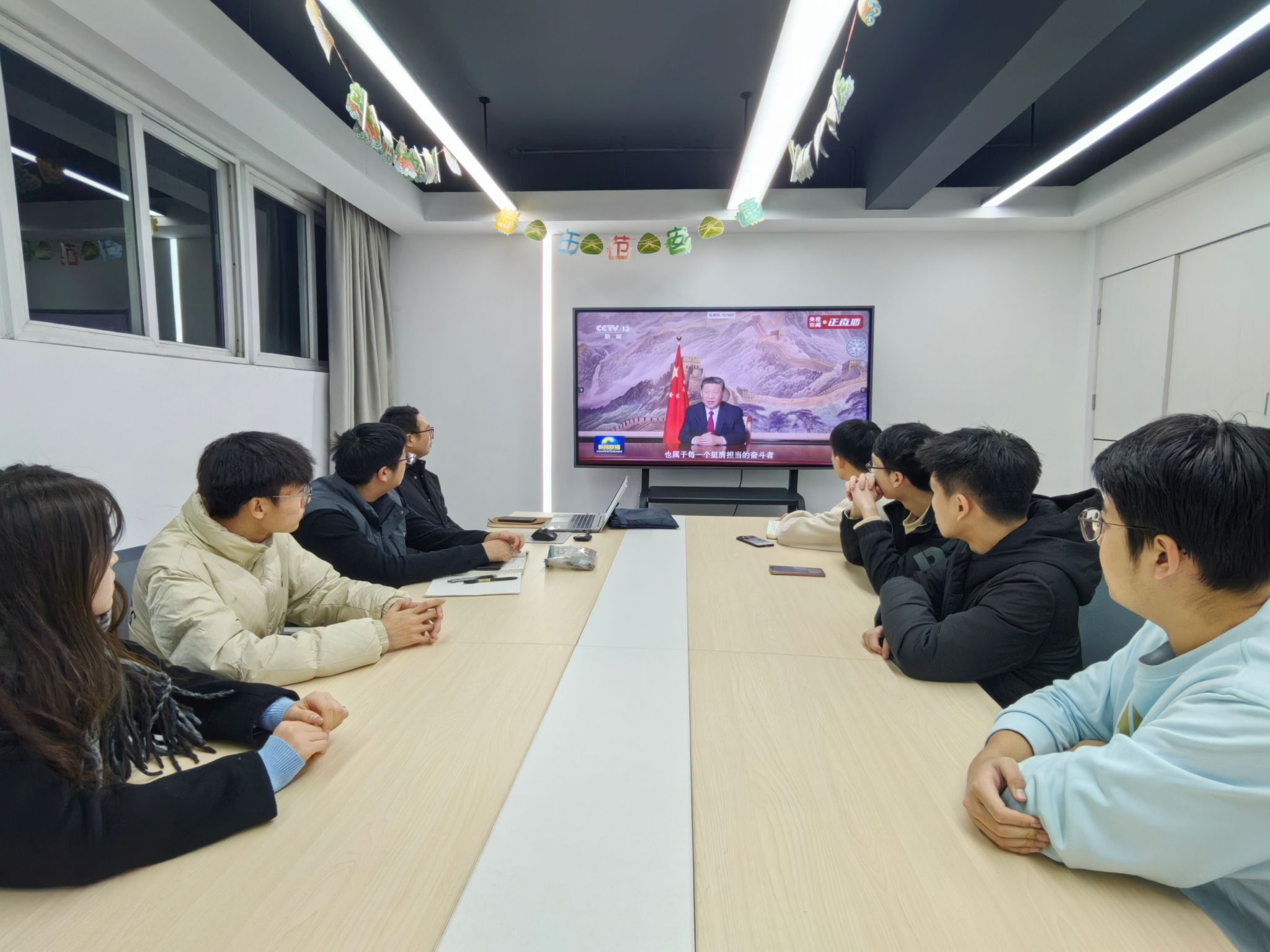 12月31日晚,麻豆 于四号楼学生社区会议室组织观看习近平总书记2025年《新年贺词》,学院2023级辅导员、2024年全体新发展党员和新发展团员30余人参与了本次活动。