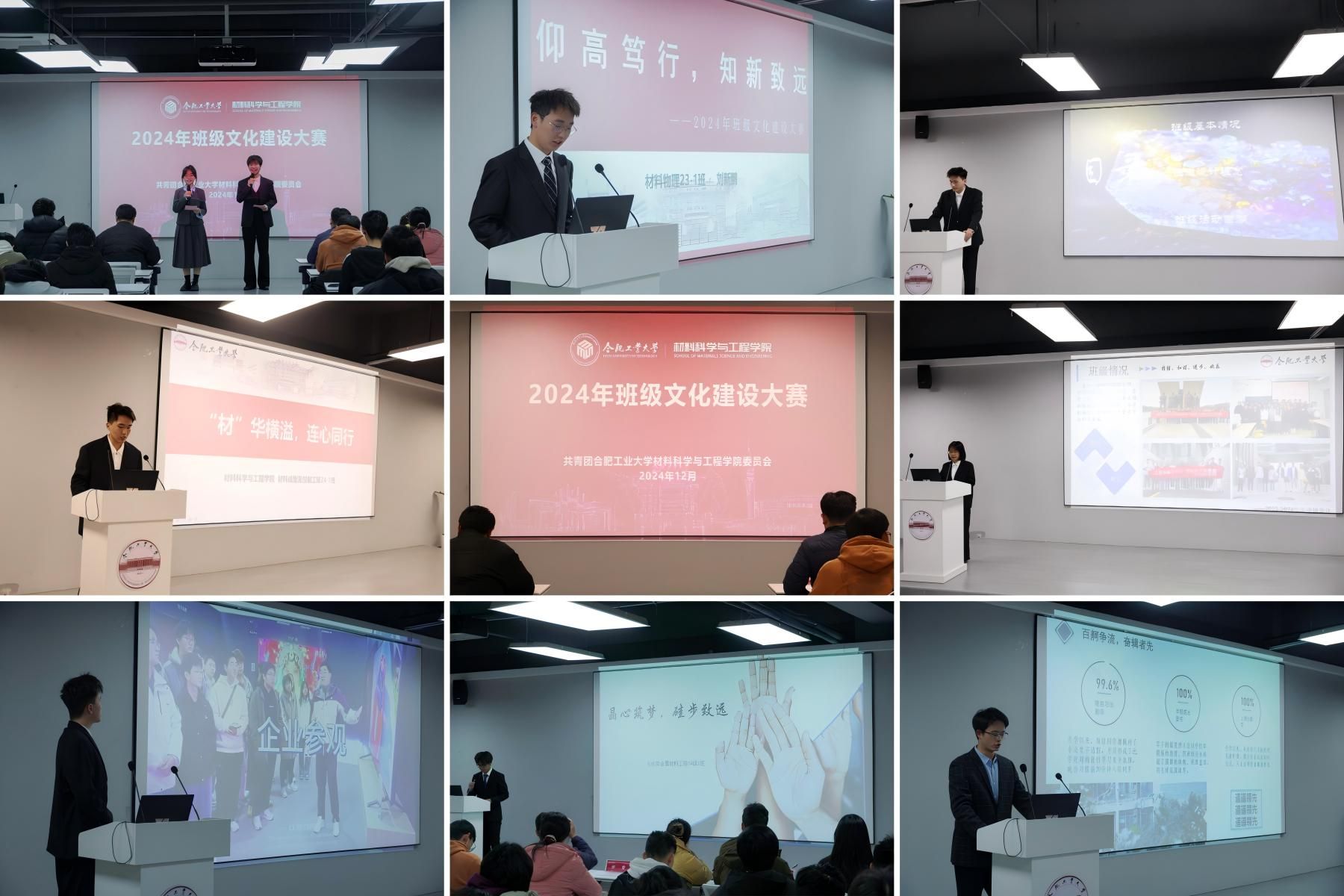为增强班级成员的集体凝聚力和荣誉感,激发团体成员的创新能力,激发学院青年学子的朝气与活力,12月30晚,麻豆 于翡翠湖校区科教楼B座501报告厅开展“材韵聚华彩,班魂筑新篇”2024年班级文化建设大赛,学院辅导员、2023级和2024级学生代表参加本次活动。