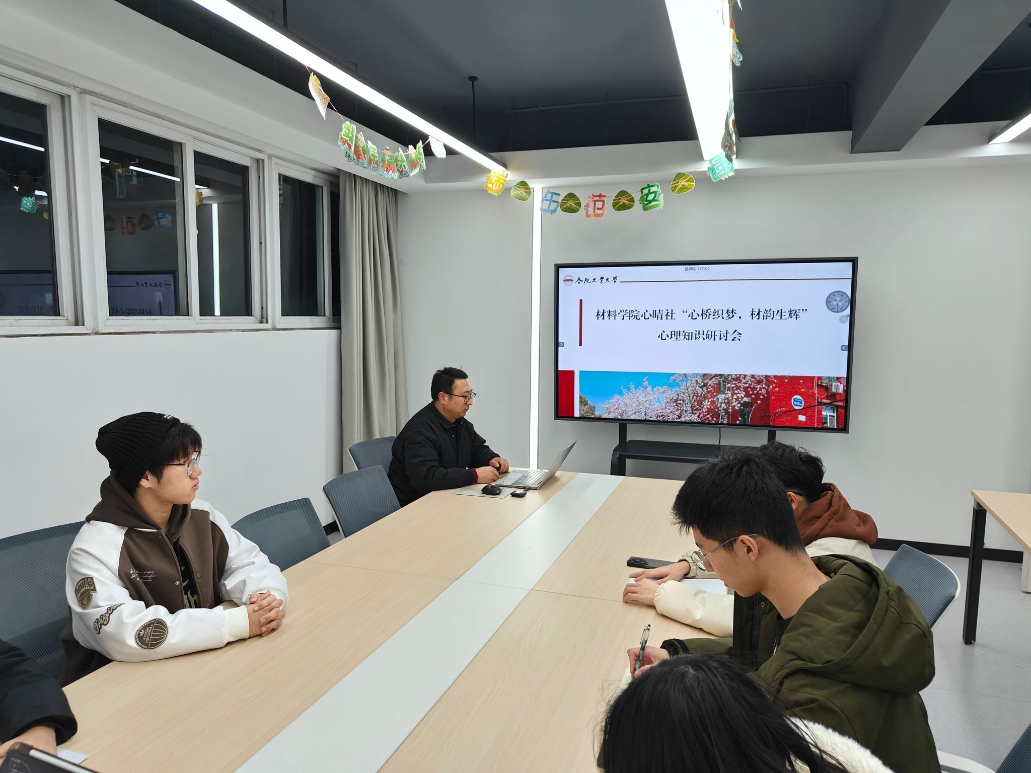心晴社大学生心理工作室于翡翠湖校区四号宿舍楼学生社区会议室开展了主题为“心桥织梦,材韵生辉”心理知识研讨会,麻豆