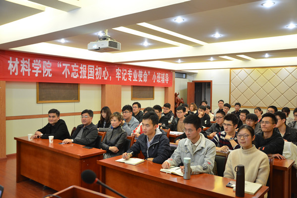 金属创新实验17-1班的全体学生在材料楼多功能厅开展了以“不忘报国初心,牢记专业使命”为主题的小班辅导。余其俊担任本次小班辅导的主讲老师,校党政办公室主任、学院党委书记、副书记及相关负责老师和全体创新班同学参加了本次活动。