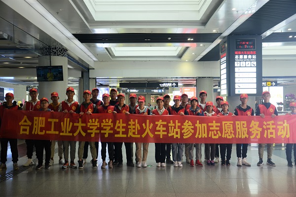 学子便乘坐地铁1号线来到合肥火车站,开启一天的志愿服务。在火车站中,满眼看到的是提着或拖着行李箱步履匆匆的旅客。在公交上客岛、南北广场路口、自助取票大厅等重点区域,不时看到有旅客向身穿红马甲,带着红色的帽子的志愿者咨询。志愿者们洋溢着微笑,以诚挚的态度,饱满的热情,专业的素养为广大游客提供免费咨询服务。