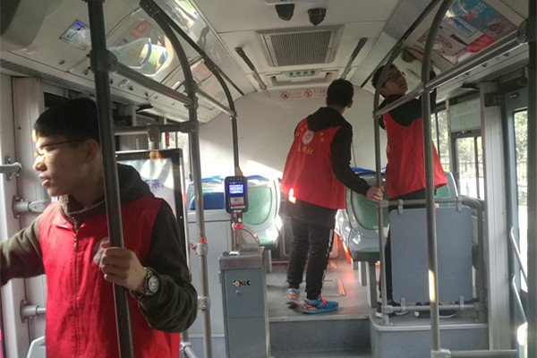春晖社招募17名志愿者前往翡翠湖公交站开展“美丽公交,你我共建”主题志愿活动。活动中,志愿者们不仅对公交车的扶手、门窗进行清洗,同时还对一些卫生死角进行了有效的清扫。活动过程中同学们秩序井然,彬彬有礼,展现了工大学子的良好精神风貌。
