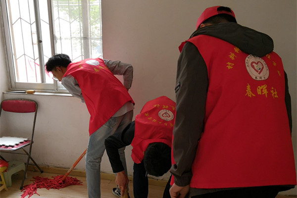 春晖社校园服务部志愿者一行前往翡翠北园开展慰问孤寡老人主题志愿服务活动。在社区工作人员的带领下志愿者们以4人为小组开展了志愿服务活动。来到老人家中,经过简单的沟通和交流后志愿者们开始卫生清扫活动,他们耐心仔细的帮助老人整理着每一个房间,老人则向志愿者们讲述了自己的过往经历,感慨新时代的美好,并鼓励志愿者们要立鸿鹄志,做新时代的奋斗者。