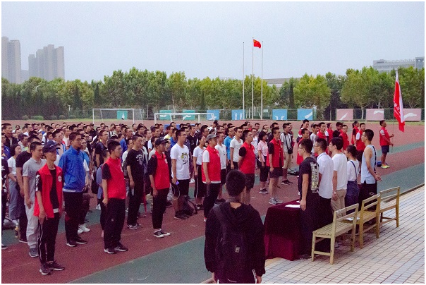 “团结•拼搏•激情”体育文化节在庄严的国歌声中拉开了帷幕。学院18级辅导员老师就本次体育文化节做了开幕致辞。紧接着,院学生会体育部部长宣读了本届体育文化节各类赛事项目及赛程安排。随后,裁判员代表、运动员代表分别做了现场宣誓,他们慷慨激昂呈词为所有裁判员和运动健儿们树立了典范,为后续工作的顺利开展奠定了良好的基础。最后,本届体育文化节活动以师生趣味传球的方式成功揭幕。