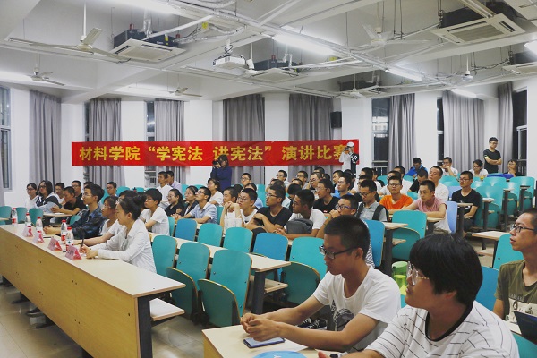 活动一开始,主持人对宪法进行了简要介绍,为正式比赛拉开了帷幕。在经过多天的充分准备下,九名参赛选手们在台上镇定自若,紧紧围绕三个中心——一是全民学法,促进全民知法守法护法;二是宪法的现实意义,以及宪法治国安邦作用;三是宪法的由来以及将来对宪法的补充和完善——进行了阐述,并提出了自己独到的见解。在演讲的过程中选手们舌灿莲花,妙语连珠,在与观众评委的互动中引发共鸣,一时学法知法热情高涨,台下掌。演讲完毕后,17级辅导员陈凤舞老师对此次比赛做了总结:“今年对宪法进行了最新修改,作为大学生,应知法尊法守法,所以比赛目的之一即为大学生普及法律、了解法律。另外,大学里有很多平台,望大家能够充分利用这些平台与机会,在大学得到成长!真切希望今后同学们能拥有一个更加充实、富有意义的大学生活。”