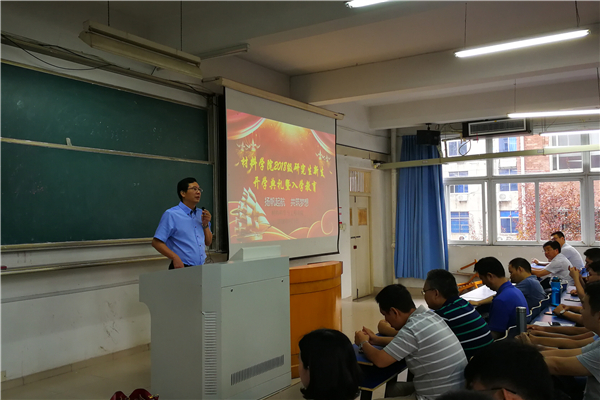 院长张久兴为新生致辞,张院长对于新生的到来表示了热烈的欢迎和最忠心的祝贺,希望他们在新的环境中能够不畏艰险,潜心研究,鞭策新生勇担责任,再攀高峰。然后是老师代表王岩发言,王老师主要阐述了研究生阶段和本科阶段的学习的差异性,突出研究生期间应该“论从研出,研从读起”,其次强调立言先立德,治学先做人的道理,最后给予新生期望,望大家“合抱之木,生于毫末;九层之台,起于累土;千里之行,始于足下”。