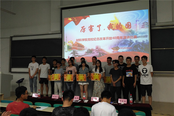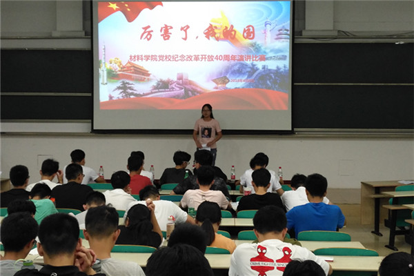 党校为庆祝改革开放40周年,于翠2教201教室组织开展“厉害了!我的国”主题演讲比赛,党校第59期入党积极分子班全体成员参与了此次活动。