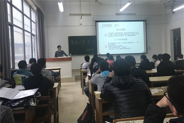 本科生党支部在翡翠湖校区三教208教室召开了学生党员发展答辩会,院17级辅导员与党支部的2名14级学生党员出席并担任了本次答辩会的评委,院16级15名发展对象级17级28名入党积极分子参与了此次答辩活动。
