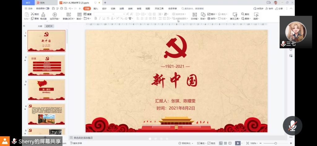 本科生第三党支部于线上集中开展学习中华人民共和国的成立和社会主义制度的建立党史主题党日活动。主题活动由陈嬗雯和张琪两位党支部新发展党员主持并进行党史授课,第三党支部全体成员(含预备党员)参加活动。