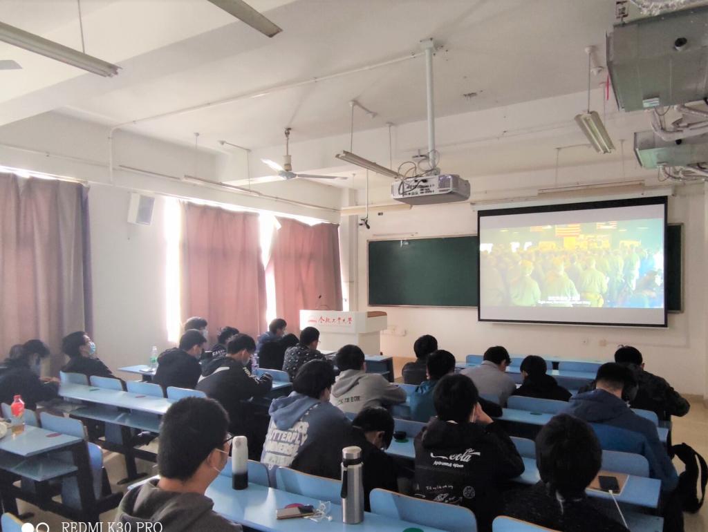 在翡翠湖校区组织开展了“峥嵘岁月强使命,铸魂力行展担当”红色主题观影活动。材料成型及控制工程20-1班全体学生集体观看了重大历史题材电影《长津湖》。