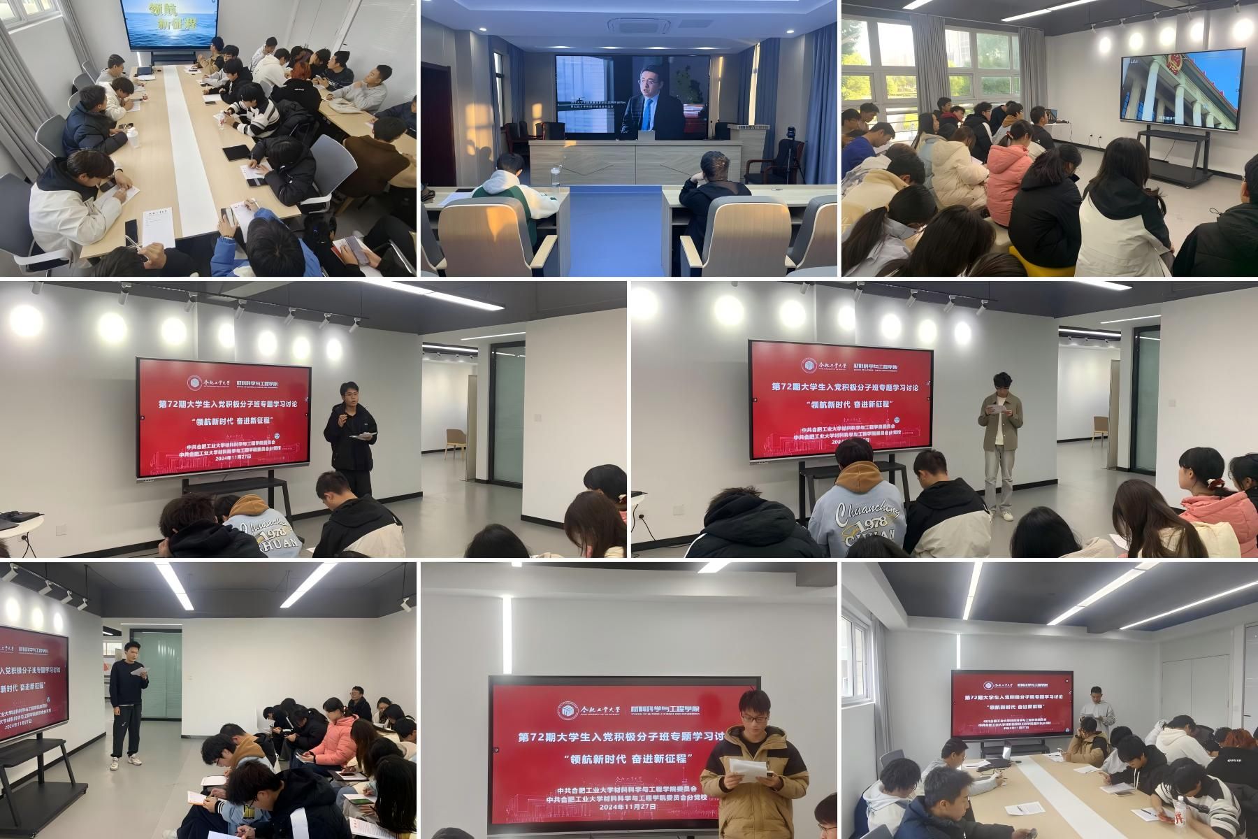 组织分党校第72期入党积极分子班于翡翠湖校区三号楼学生社区、屯溪路校区党员之家分别开展“领航新时代,奋进新征程"专题学习讨论。