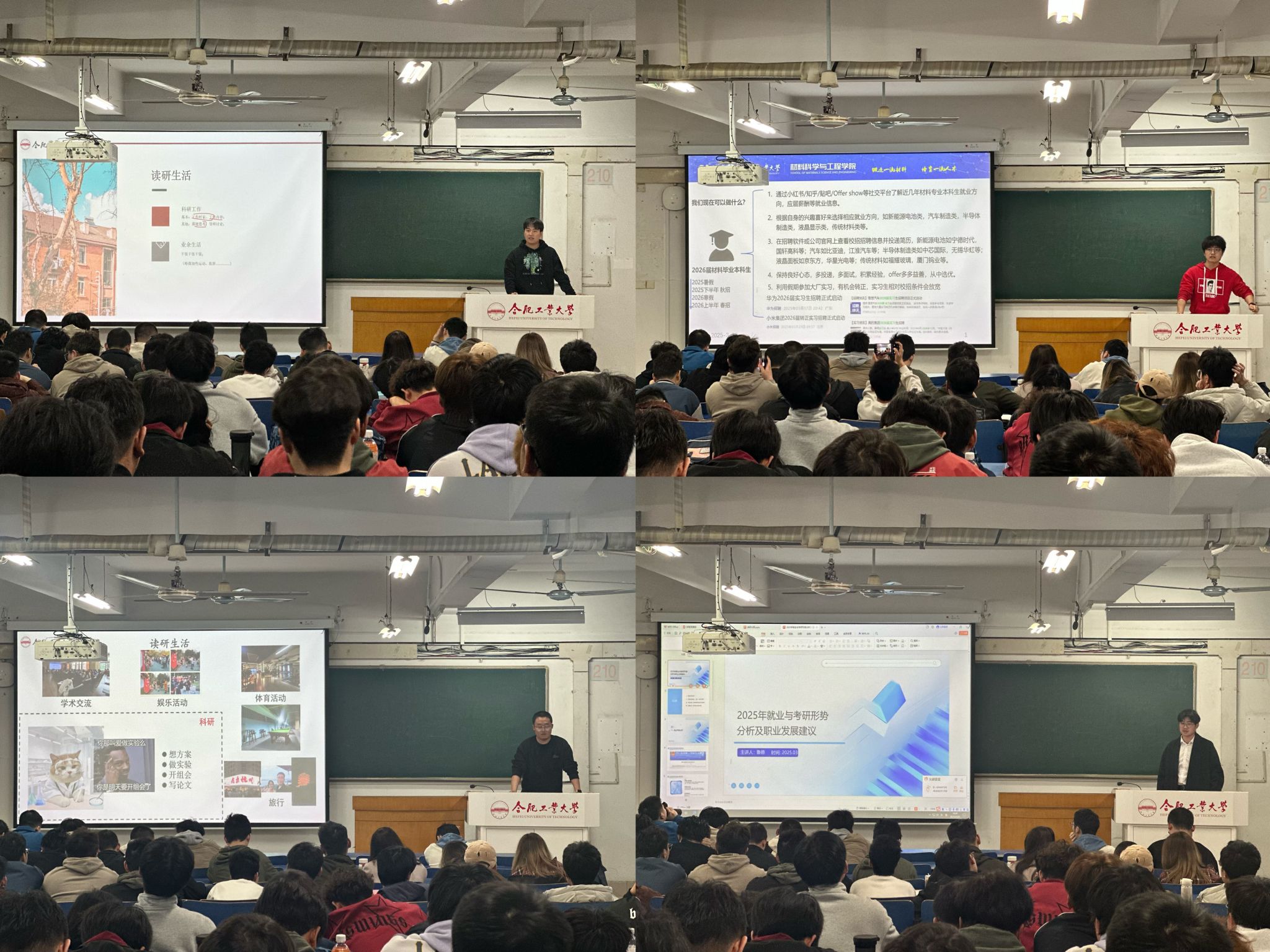 在屯溪路校区西二教210室举办“材子领航”优秀校友经验分享会。活动特别邀请2022届毕业生4人进行分享,学院2022级全体本科生参与本次分享会。