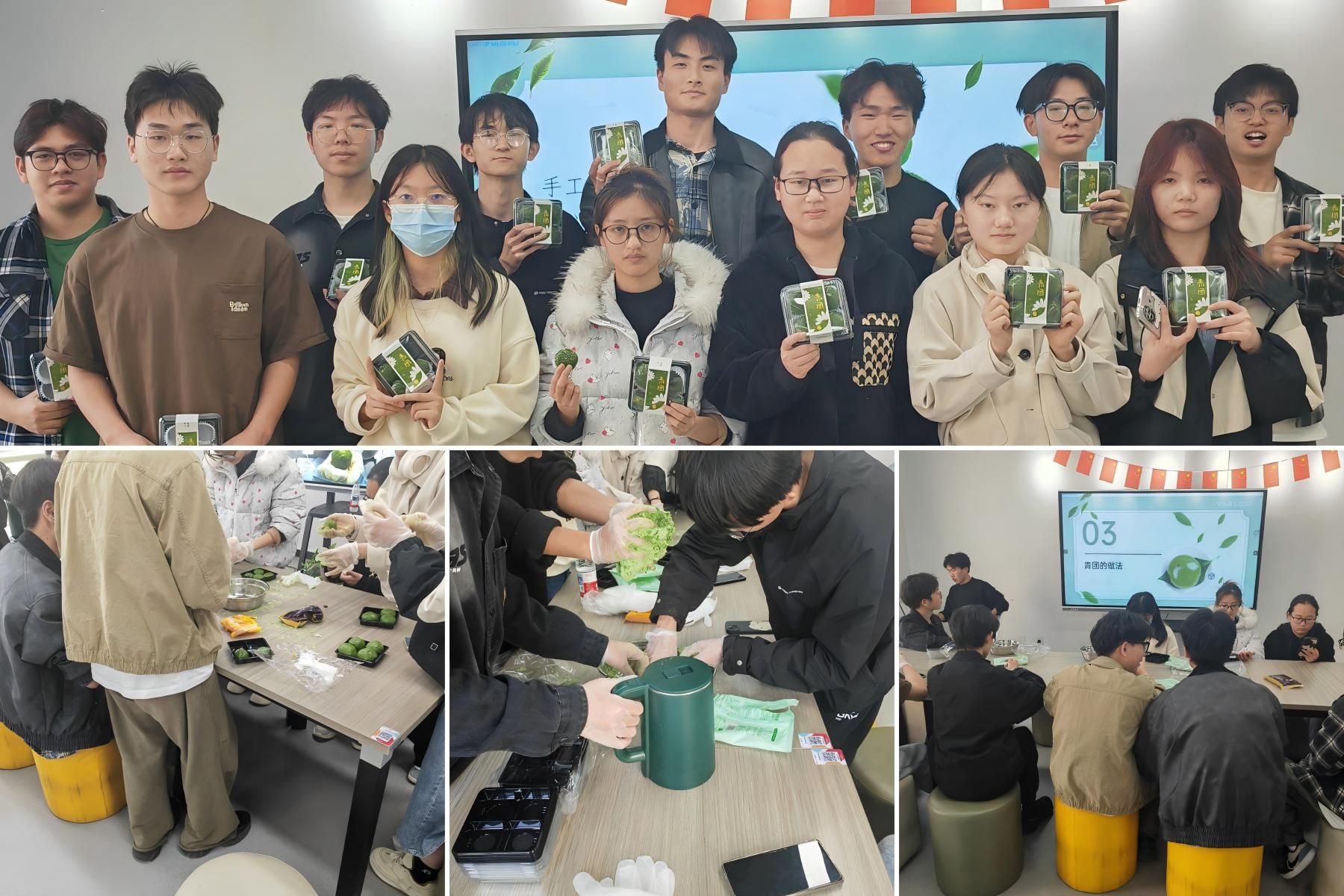 活动现场,大家热情高涨,在负责人的指导下,同学们认真和面、包馅、塑形……虽然手法略显生疏,但一个个充满创意的青团在他们手中诞生。经过蒸制,青团散发出诱人的清香,大家迫不及待地品尝自己的劳动成果,脸上洋溢着满满的成就感。此次活动不仅让同学们体验了传统美食的制作过程,也让他们在实践中感受到传统文化的魅力,增强了对传统文化的认同感。