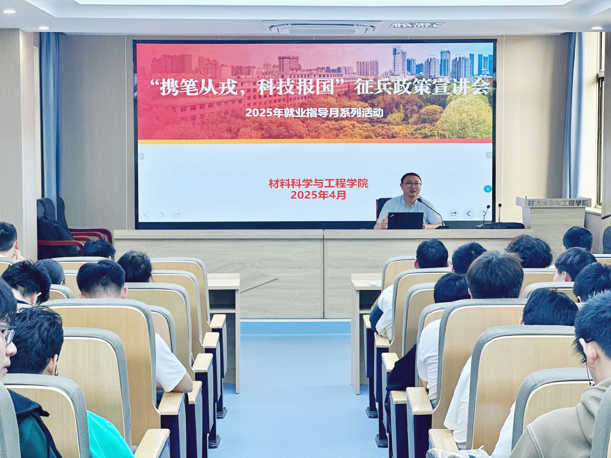 于材料楼601举办“携笔从戎,科技报国”征兵政策宣讲会。学院70余名学生参与活动。