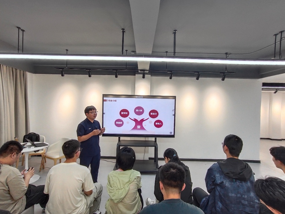 本次班会“以爱之名,书写我们的时代答卷”为主题,由年级辅导员马贤峰主讲。在探讨“爱”的内涵环节中,他从哲学、社会学等多维度阐释“爱”,指出爱是对家人的责任、对他人的关怀,更是对党和国家的忠诚与担当,引导同学们树立正确的爱价值观。解析了青年爱国路径,结合中美贸易战背景,分析了当下国际形势,强调青年爱国需理性认知、提升自身实力,以科技创新、文化自信等实际行动维护国家利益,做有理想、有本领、有担当的时代新人。最后,他向同学们阐明如何践行爱校荣校,对全体同学提出殷切希望,一要传承校训精神,勤奋学习;二要积极参与校园建设,弘扬优良校风;三要以优异成绩为校争光,将个人成长与学校发展紧密结合。