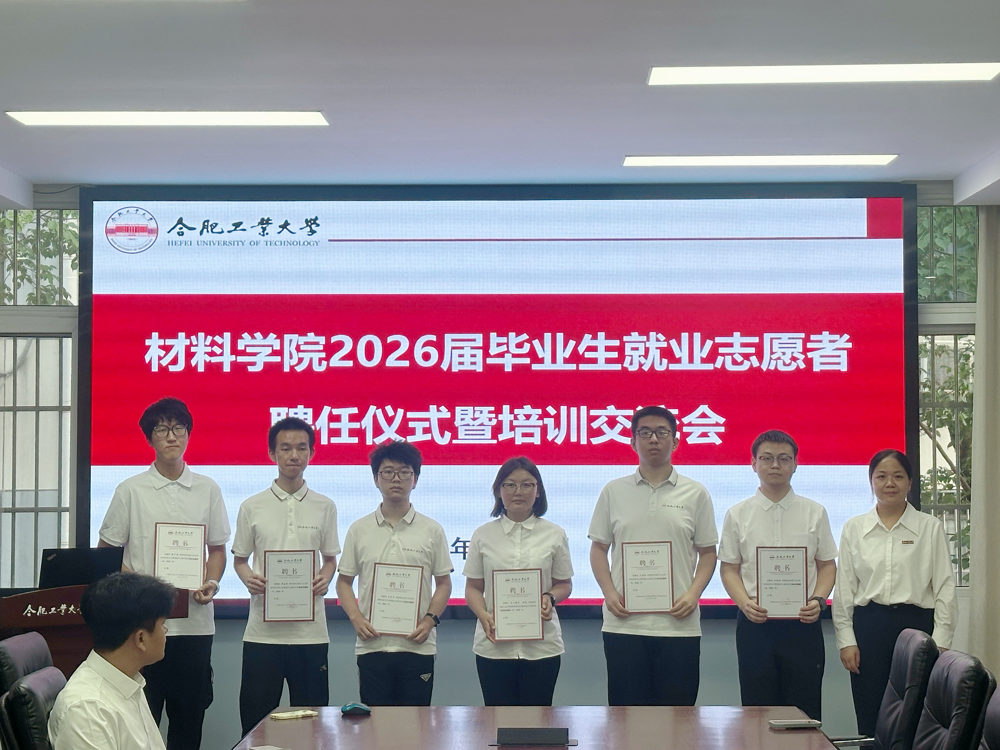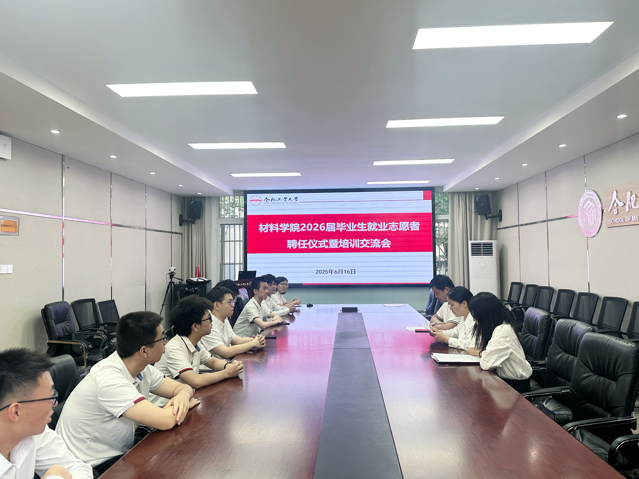 在材料楼综合服务中心210举办2026届毕业生就业志愿者聘任仪式暨培训交流会。学院相关负责人、2026届毕业班辅导员和全体就业志愿者参会。
